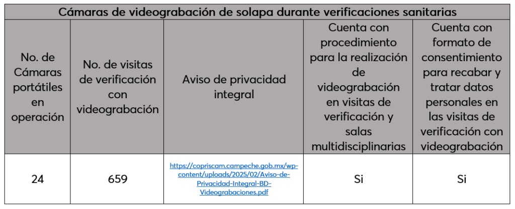De igual manera, se cuenta con una bitácora de resguardo, en la que se encuentran los reportes de las visitas de verificación con videograbación en los establecimientos indicados en el programa anual de verificación, dichos reportes contienen el número de orden, fecha, domicilio, clave SCIAN, la firma de la persona servidora pública que realizó la visita de verificación y la firma de la persona responsable del Centro de Control y Vigilancia.