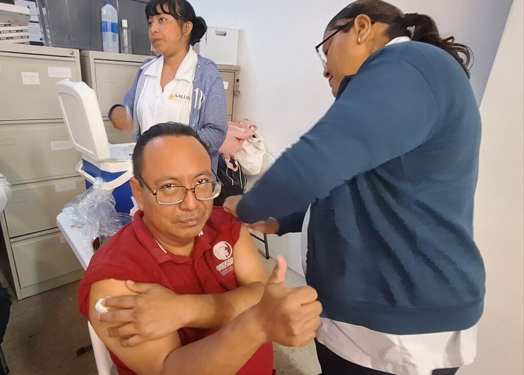En la COPRISCAM se llevó a cabo una jornada de vacunación dirigida al personal, en la que se aplicaron vacunas contra sarampión, neumococo, COVID-19 y tétanos, como parte de las acciones para fortalecer la prevención y el cuidado de la salud.