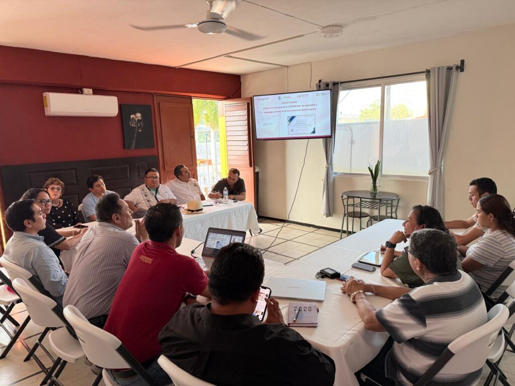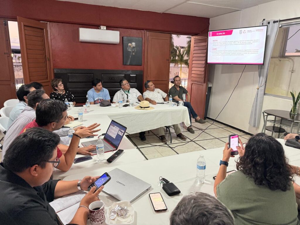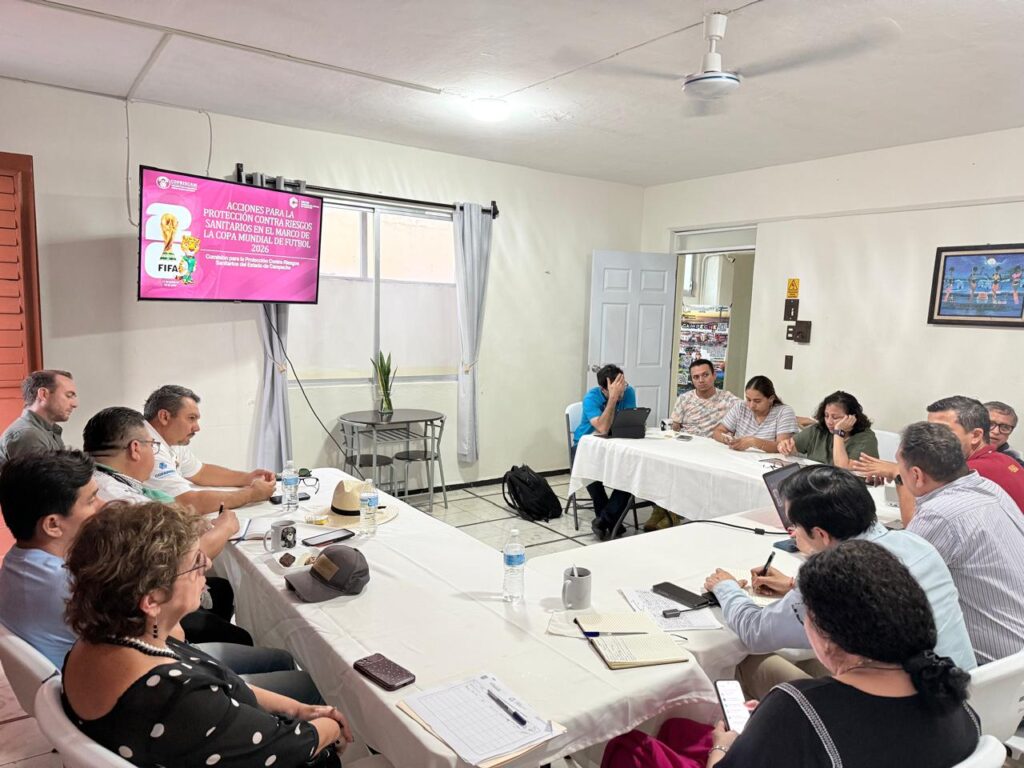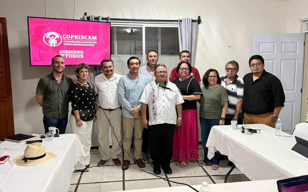 El Lic. Luis Huberto López López, titular de la COPRISCAM, participó en una reunión de trabajo con el Consejo Empresarial Turístico de Campeche (CETURCAM), donde presentó la Estrategia Nacional de Buen Gobierno (ENBG) en el Sistema Federal Sanirtario y el Protocolo para la Protección contra Riesgos Sanitarios, en el marco de la Copa Mundial de Fútbol 2026.