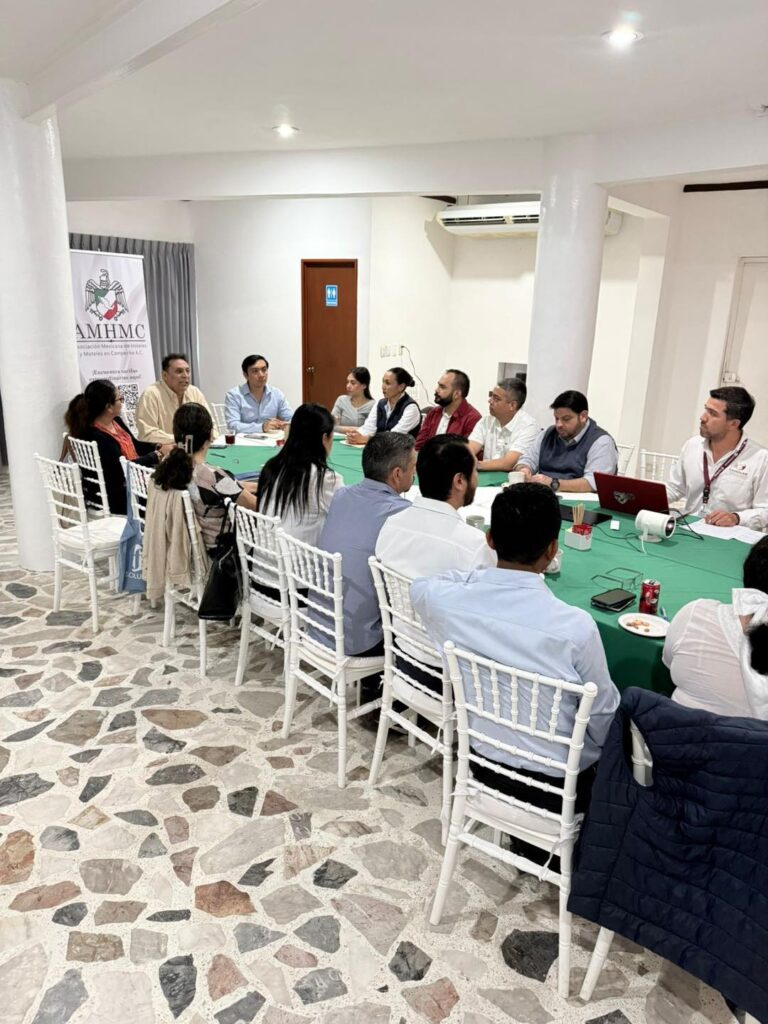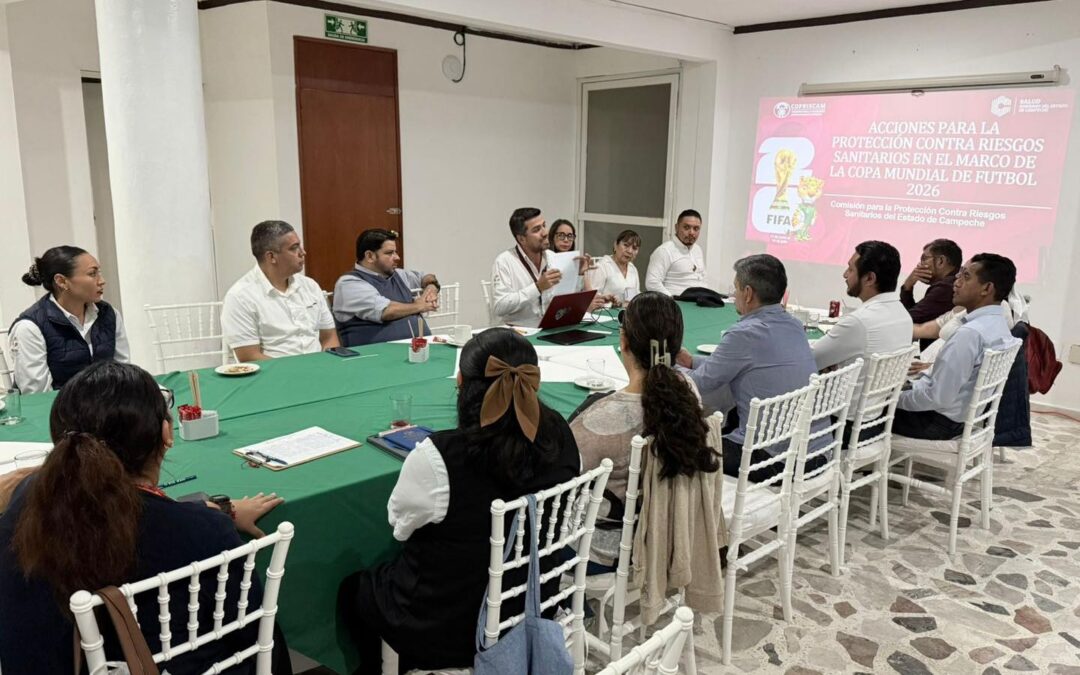 El Lic. Luis Humberto López López, titular de la COPRISCAM, participó en una reunión de trabajo con la Asociación Mexicana de Hoteles y Moteles en Campeche A. C., donde presentó la Estrategia Nacional de Buen Gobierno (ENBG) en el Sistema Federal Sanitario y el Protocolo para la Protección contra Riesgos Sanitarios, en el marco de la Copa Mundial de Fútbol 2026.