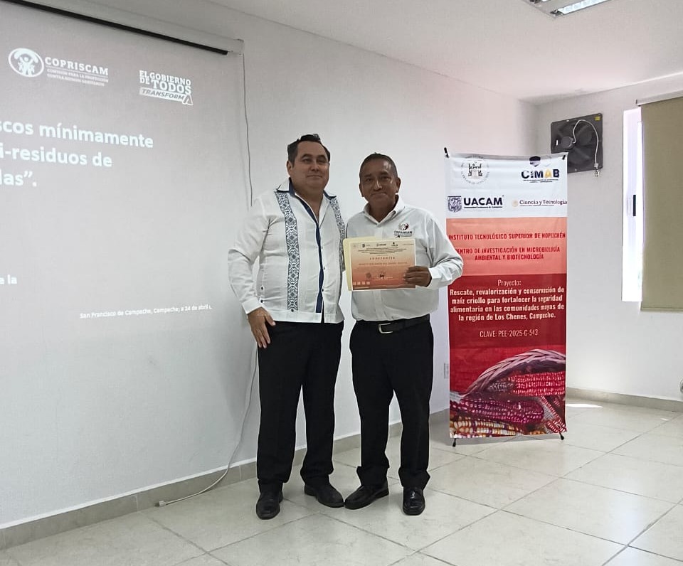 En el marco del Día Internacional de la Tierra, participamos en el evento “Tierra-Microorganismos-Maíz”, organizado por el Centro de Investigación en Microbiología Ambiental y Biotecnología – CIMAB de la Universidad Autónoma de Campeche (UACAM), en colaboración con el Instituto Tecnológico de Hopelchén TECNM – Hopelchén